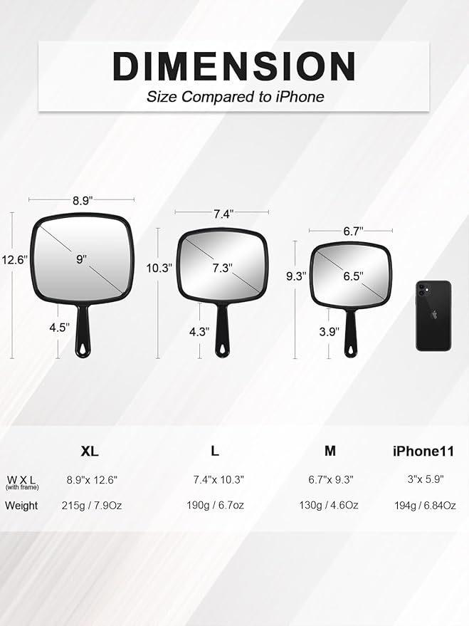 - BIGGER VIEWING AREA: large hand mirror reflective surface. You can see your face and the back of your head at a glance. Perfect barber mirror for self hair-cut and hair styling