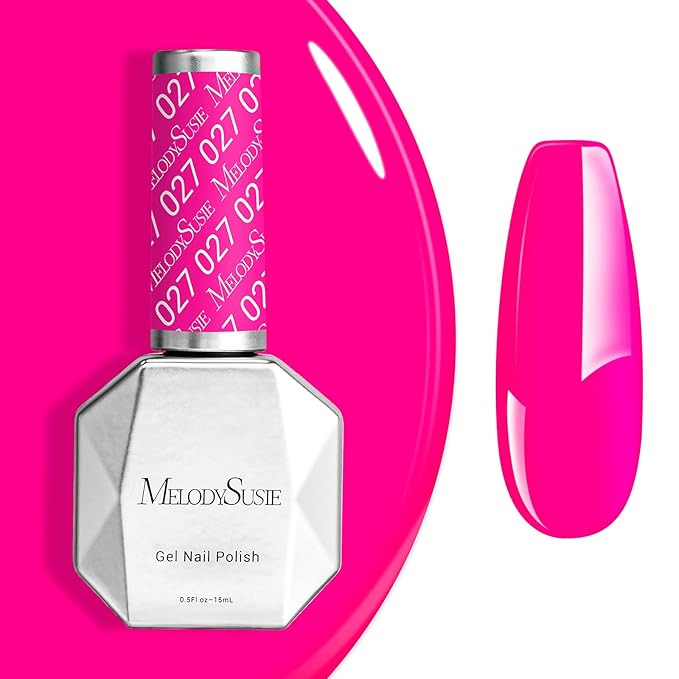 MelodySusie Neon Pink Gel Nail Polish,0.5fl oz Bright Pink Nails Soak Off UV LED Hot Pink Gel Polish Gift for Women Nail Art Manicure Salon DIY Nail Design Decoration at Home-027