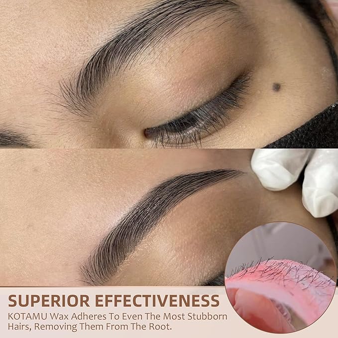 - Ideal For Delicate Areas & Versatile Use: KOTAMU wax beads for hair removal are specially designed to tackle all hair types, from the thickest and coarsest to the finest and shortest. Ideal for full body waxing, this hard wax excels in sensitive areas like the face, eyebrow, chin, lip, brazilian area, bikini lines, armpits, arms, legs, chest, and back. No strips needed, suitable for women and men at home and salon waxing