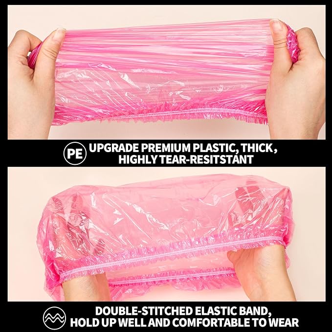 LEOBRO Disposable Shower Caps, 100PCS Large Shower Cap, Plastic Shower Caps for Women Disposable, Thick Plastic Caps for Hair Treatment, Large Size 19.3 INCH, Pink