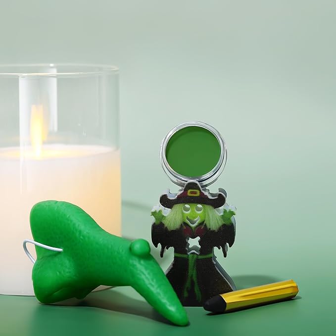- ✦The mini character kit comes with 3 items, neatly packed together in a cardboard, they are - 3g pot of cream green face paint, 1 cream black crayon and a green witch nose accessory. You won’t need expensive makeup or professional skills to achieve a good or evil witch look. All it takes is a little creativity and inspiration.