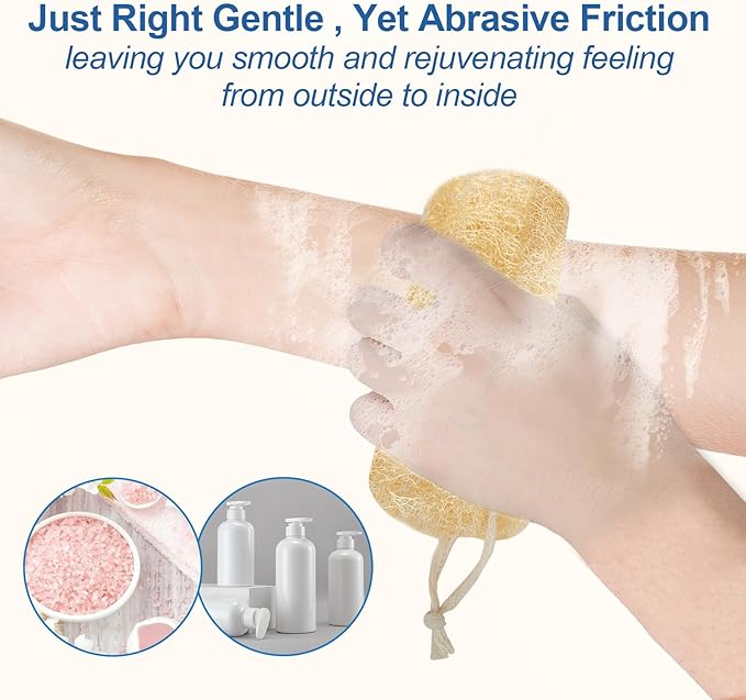 - All Natural Luffa Textures: Thanks to the unique natural luffa fibers, our sponges offer a gentle yet highly effective exfoliation. This texture promotes improved blood circulation and helps reduce the appearance of cellulite. It effectively removes dead skin cells, excess oil, and dirt, leaving your skin noticeably smoother, refreshed, and rejuvenated.