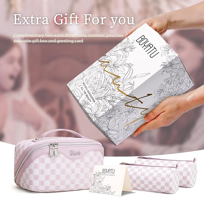 - Gifts Packaging: This big makeup bag come with Exquisite Gift Box and Greeting Card Set. It will be a great gift for elegant ladies on Valentine's Day, Mother's Day, Birthdays, Christmas, and more