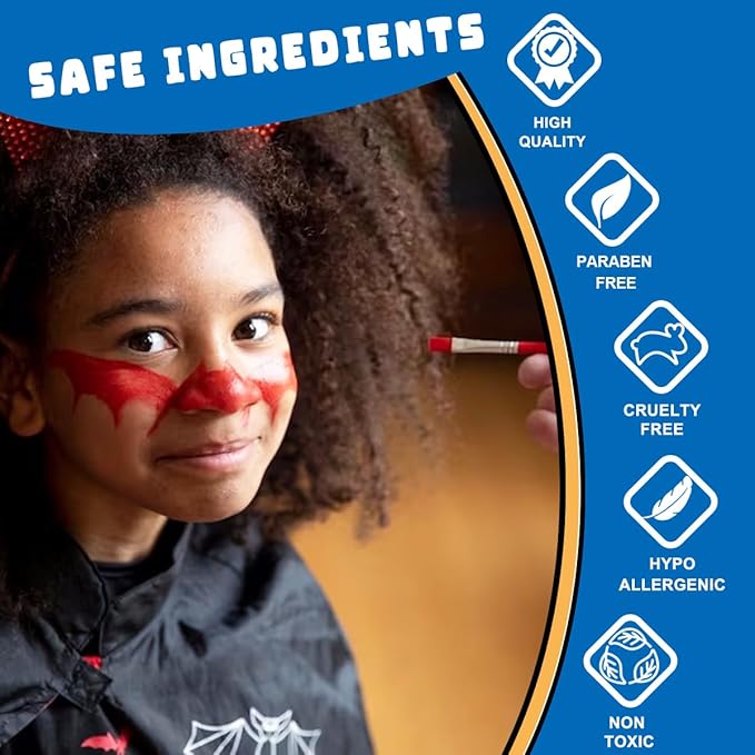 - Great coverage : Our face paints are water based and dries fast with extremely pigmented,provide long lasting,smooth and excellent coverage,less prone to fading or cracking.