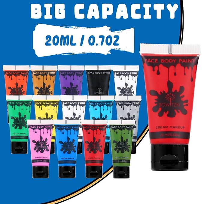 Bowitzki 14 Colors Face Body Paint Set Cream Makeup 20ml Water Based Face Painting Special Effects For Adults Children Kids Halloween Christmas Party Stage Cosplay 0.7OZ Each