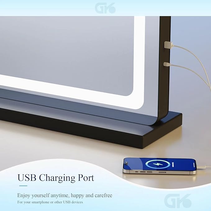 - 【USB Charging Port】The right side of the vanity mirror is equipped with USB charging ports, which can charge your smartphone or other USB devices, giving you a different and convenient experience.