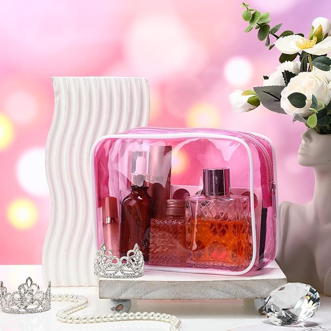 Weewooday 12 Pieces Clear Makeup Bags Cosmetic Storage Bags PVC Zipper Pouches Travel Waterproof Makeup Plastic Case for Women Organizing Toiletries Traveling Bathroom(Medium,Hot Pink)