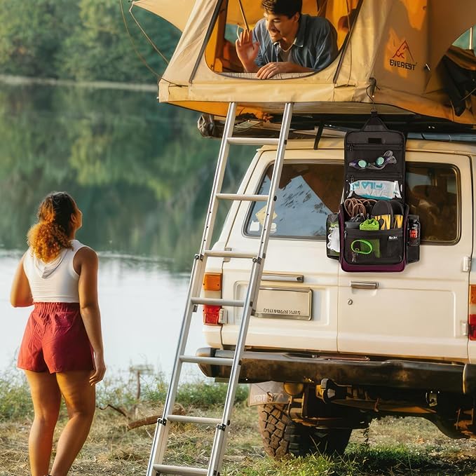 • INVEST IN THE TOP QUALITY YOU DESERVE: The reinforced double-stitched handle, extra durable zippers and the sturdy metal swivel hook make this hanging travel organizer uniquely long-lasting. 19 compartments with useful dividers and elastic loops will neatly store all your personal toiletry essentials, without taking up too much space in your luggage!
