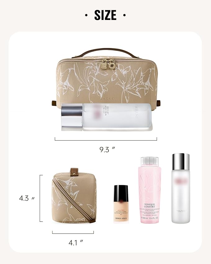 - Spacious Design: This 9.3 x 4.1 x 4.3-inch makeup bag includes inner pockets, providing organized storage for cosmetics and toiletries.
