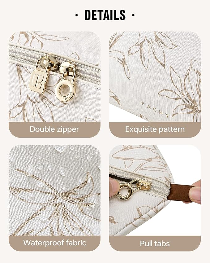 EACHY Travel Makeup Bag,Large Capacity Cosmetic Bags for Women,Waterproof Portable Pouch Open Flat Toiletry Bag Pattern Makeup Bag (F-Beige-Large)