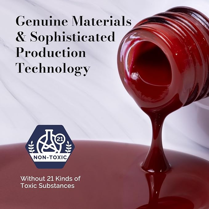 - Upgraded 3 Free Formula: 3 Free- Free of HEMA, HPMA, TPO. This gel nail polish is safer and less likely to trigger allergies. With 21 non-toxic ingredients(Free of 21 harmful chemicals such as heavy metals), this gel polish reduces the risk of nail damage. The low odor is very suitable for those who are sensitive to strong smells, ensuring a safer and healthier manicure experience.