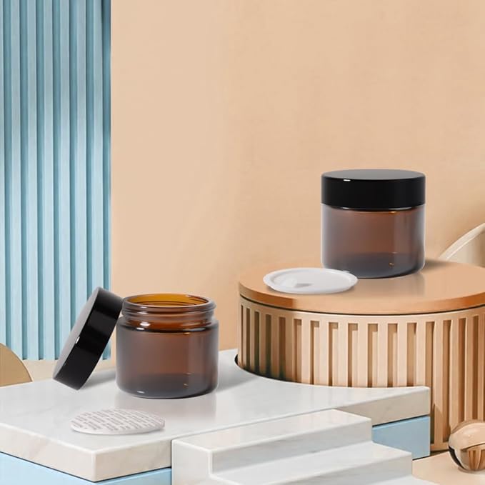 - 【ELEGANT DESIGN】Empty glass jars have a more elegant and high-quality appearance, protects your light-sensitive lotion from degrading, you don't need to worry about ultraviolet light causing your mixtures to lose potency over time