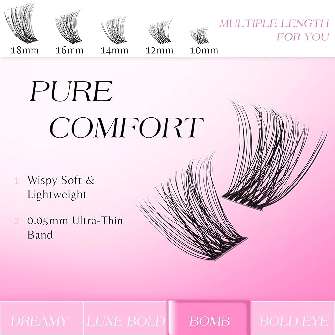 VEYESBEAUTY Lash Clusters Individual Eyelash Extensions Thin & Invisible Band DIY False Eyelashes for Self-application Newbie's Five-Second Series Wispy Lash Tray, Bomb 12mm Single Length