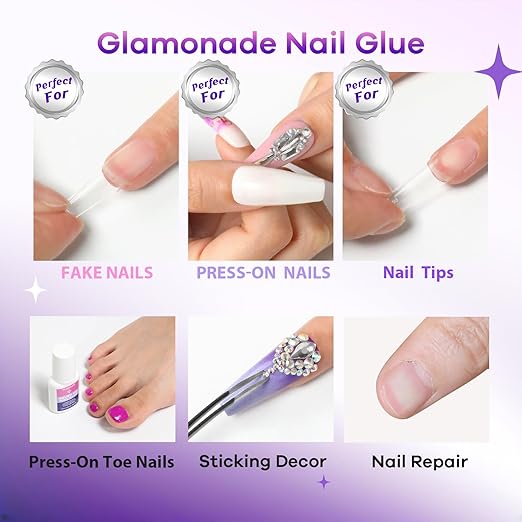 Glamonade Super Strong Nail Glue: 10ml - Professional Adhesive for Press Ons & Acrylic Nails & Fake Nail Tips Long-Lasting Mess-Free Quick-Dry for DIY Manicure