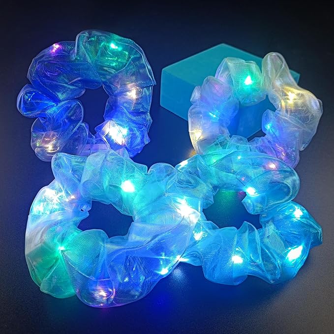 - Glow in The Dark Party Supplies:Our LED scrunchies are great for any celebration.Whether it's a neon party,a glow event,a costume party,a carnival,a rave,Halloween,or Christmas,sleepover party,they're festival must haves for fun and light.