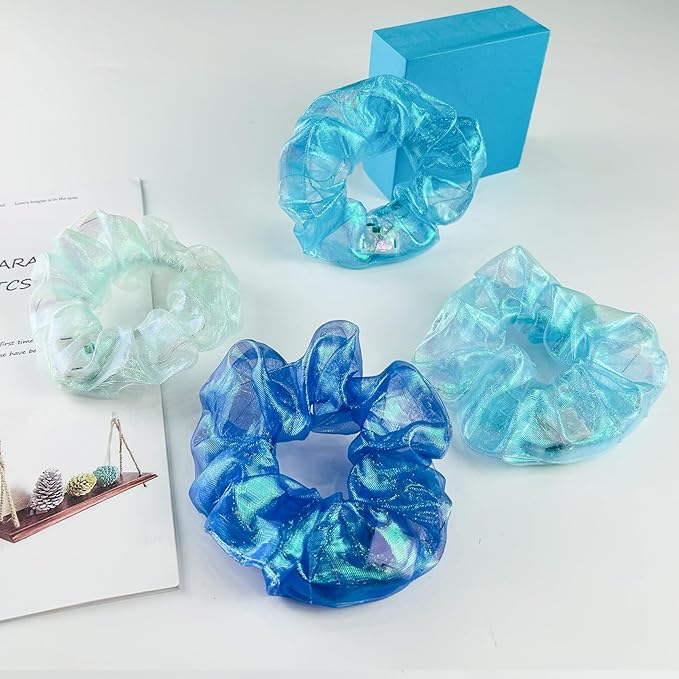- Mermaid Glow Scrunchies:Our hair tie is made with a delicate tulle material that not only glows but also reflects light like a mermaid's shimmer.Light brighter and more charming.