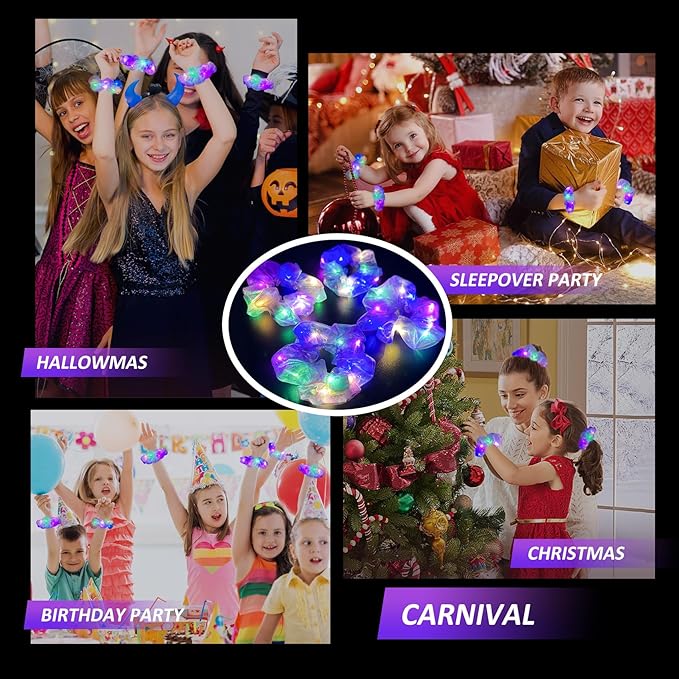 - Light Up Scrunchies:Our LED hair accessories,a must-have for sleepover party supplies for girls,boasts strong light transmission that makes you stand out in a crowd.