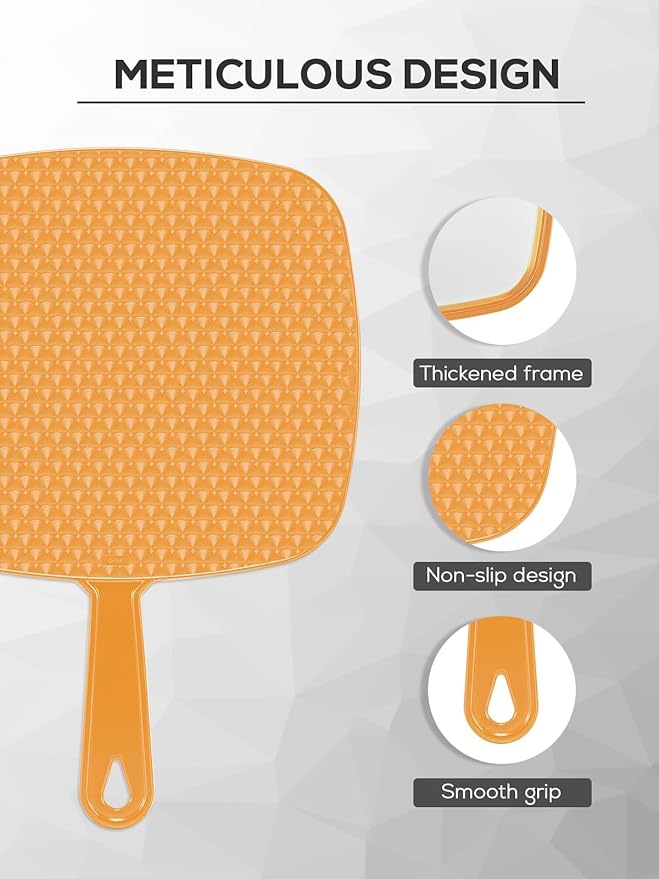 Extra Large Handheld Mirror,Hand Salon Mirror with Handle for Barbers, Hairdressing (Orange,12.4" Lx 9" W)