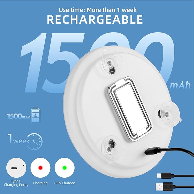 - 【Rechargeable Magnified Mirror】20x makeup mirror with magnification is built-in 1500mAh rechargeable battery, a single fully charged lasts about a week. It's USB charging, connect a laptop, charger, or power bank supply via Type-C USB for charging, no worry about replacing battery.