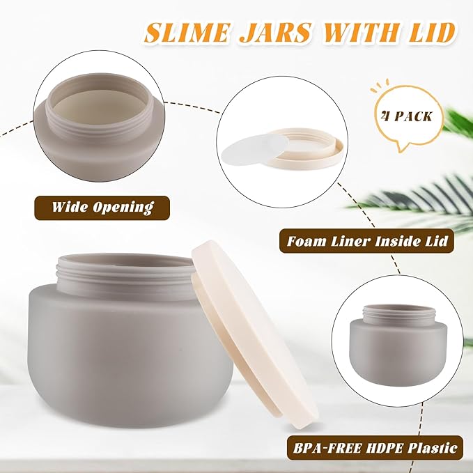 - 【MULTI-PURPOSE】These jars can be used for storing a wide variety of items such as homemade cosmetic, body lotion, moisturizers, lotions, fragrances and DIY slime. Also great for using in pantry, arts and crafts room.