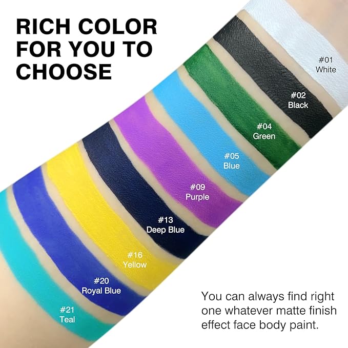 - 【Rich Color For You To Choose】Our Halloween face body paint available for kinds of color choices for you. You can always find right one whatever black/white/blue/yellow/purple face body paint.