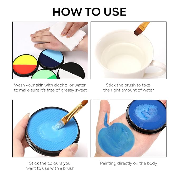 - 【Smudge-proof & Easy To Remove】The pigment is not easy to fade after drying and ensures that your face body paint will not be stained by sweat. And you only need to use soapy water or makeup remover to clean it.