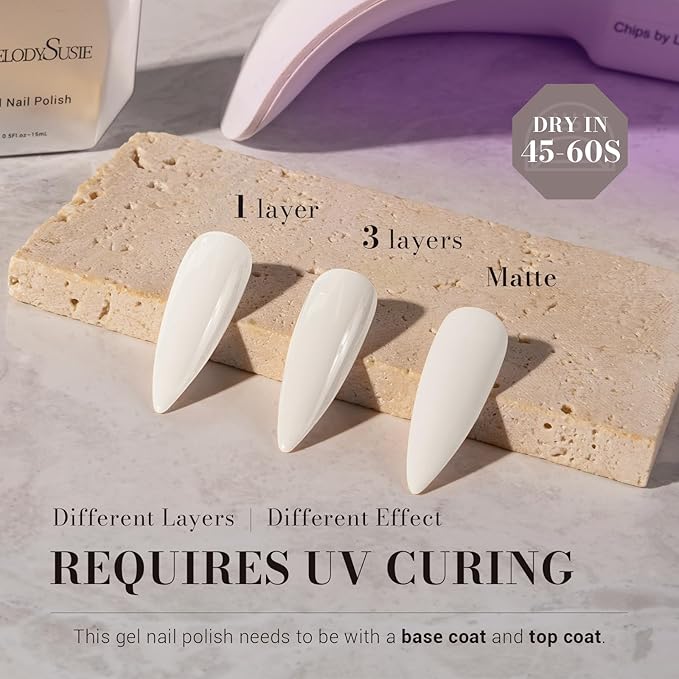 MelodySusie White Gel Nail Polish,0.5fl oz Nails Soak Off UV LED Milky White Gel Polish Christmas Gift for Women Nail Art Manicure Salon DIY Nail Design Decoration at Home-595-A2202