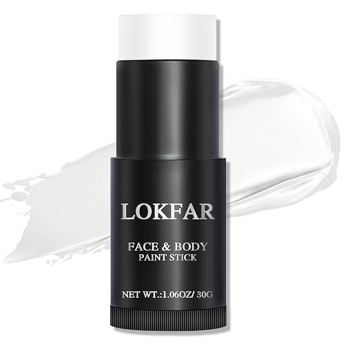 - PRO FACE BODY PAINT STICK --- Our white face paint sticks are 1.06oz/30g in size, and are large enough to cover all types of Halloween characters' face and body makeup. The waterproof and sweat-proof oil-based formula glides on and blends easily, does not fade, crack, flake, or clump. It can be easily applied with a brush, sponge, or fingers. Warm Tips: Since this is an oil-based product, we strongly recommend that you use a setting product after application to keep the makeup longer and avoid transfer and smudging.