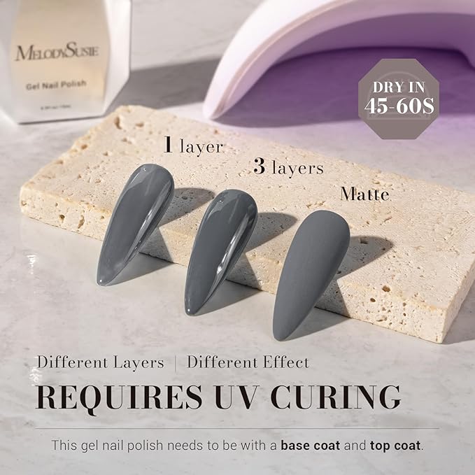 MelodySusie Gray Gel Nail Polish,0.5fl oz Autumn Winter Nails Soak Off UV LED Dark Gray Gel Polish Gift for Women Nail Art Manicure Salon DIY Nail Design Decoration at Home-246-A2042
