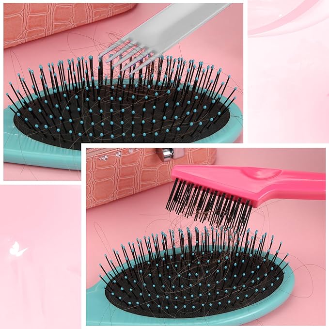 Yaomiao 2 Pcs Hair Brush Cleaner Tool 2-in-1, Pink and Gray Hairbrush Cleaner for Removing Hair Dust, Mini Comb for Removing Dirt, Home Salon Use