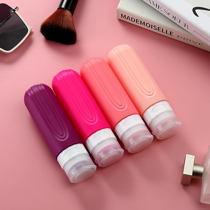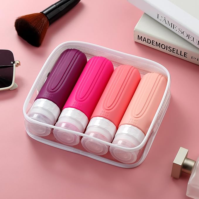 Travel Bottles for Toiletries, Tsa Approved 3oz Travel Size Containers BPA Free Leak Proof Refillable Liquid Silicone Squeezable Travel Accessories for Shampoo Conditioner Lotion (4 Pack)