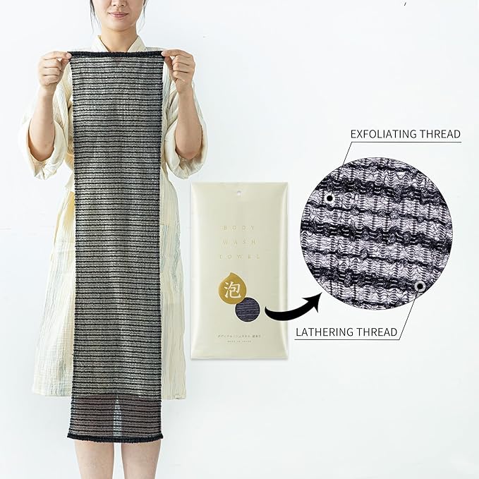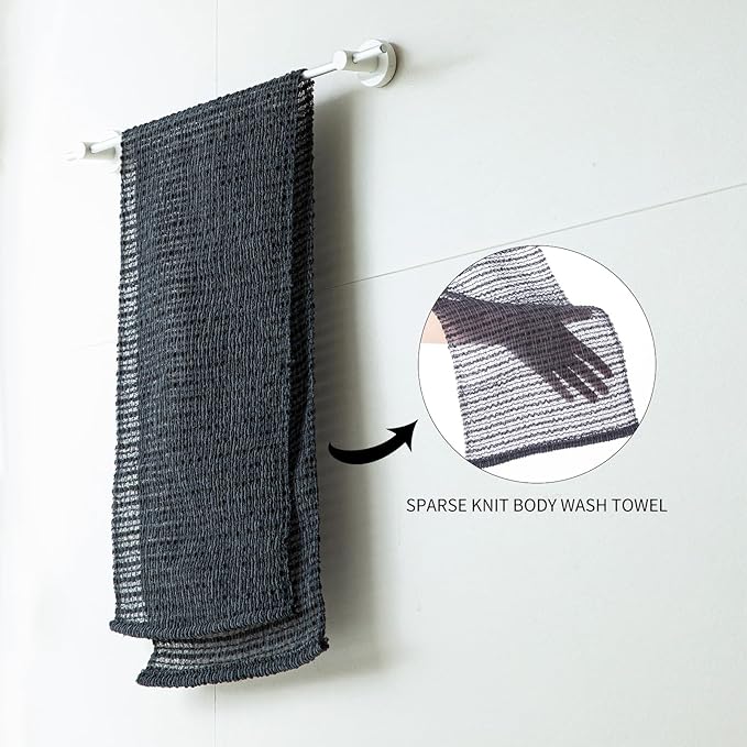 SHIMOYAMA Body Wash Towel, Exfoliating Shower Towel, Bath Loofah, Body Scrubber, Black