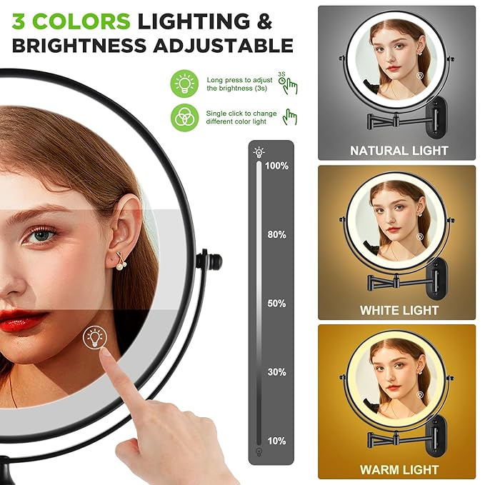 - Easy Setup and USB Rechargeable: Embrace the convenience of a rechargeable battery, built to last and easy on the environment, with no need for constant battery changes. This mirror has completely changed my makeup routine! Please check that all accessories are complete before installation, the base can be installed to any wall with simple screws.