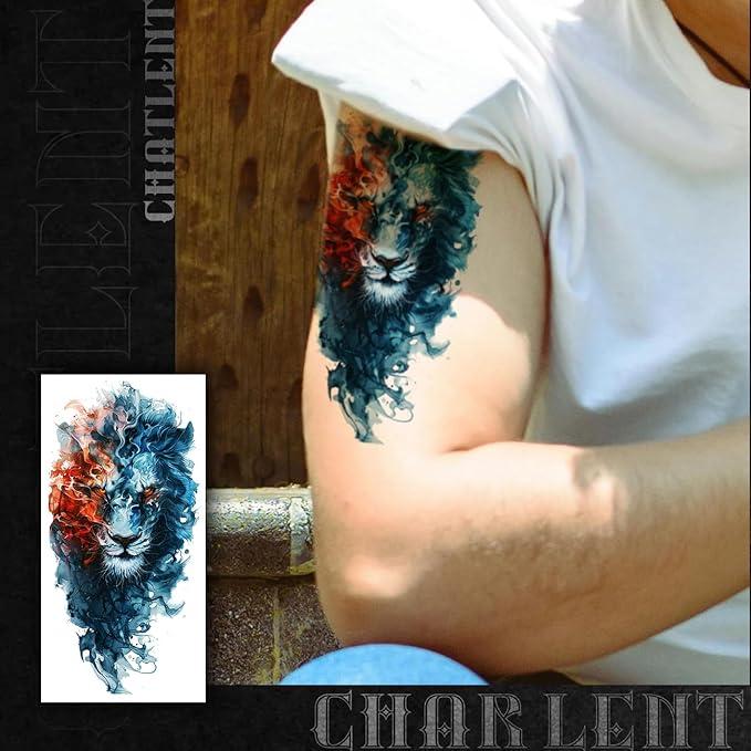 - ⚡Awesome Realistic Watercolor Beast Fake Tattoos for Men -- Super stylish design temporary tattoos, set includes variety of animals elements(tiger,lion,eagle,wolf,spider) that you can use for different locations on your shoulder, arms, chest, etc. Easy to share it with your family and friends.