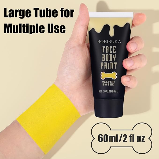 BOBISUKA Yellow Face Body Paint, Water Based Face Painting for Art Theater Halloween Party Cosplay Clown SFX Makeup for Women Adults, Non-Toxic Washable