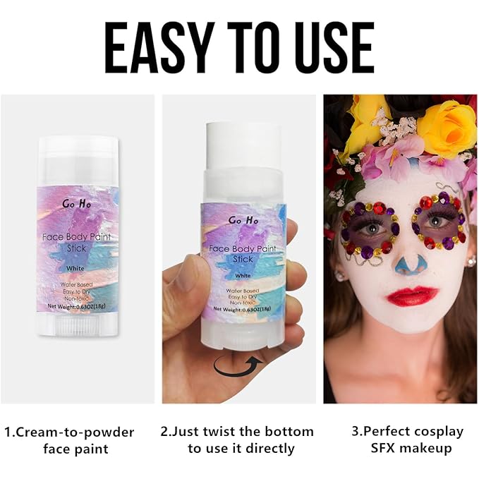 - 【Easy to Apply and Remove】Just rotate it out and paint it on your skin.Good for face and full body painting.Let your imagination run wild and make your fantasy creatures. Easy to apply and wash off with just soap and water.