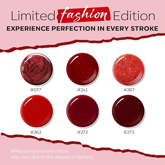 - Passionate Red Hues: Unleash your inner passion with the vibrant reds of sparkle red, red, and deep red. These shades ignite confidence and allure with every wear. With 6 fiery shades of modelones fabulous red nail polish set will lift your mood and brighten your winter days.