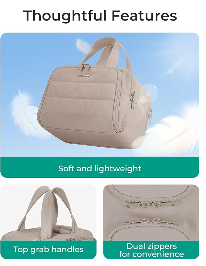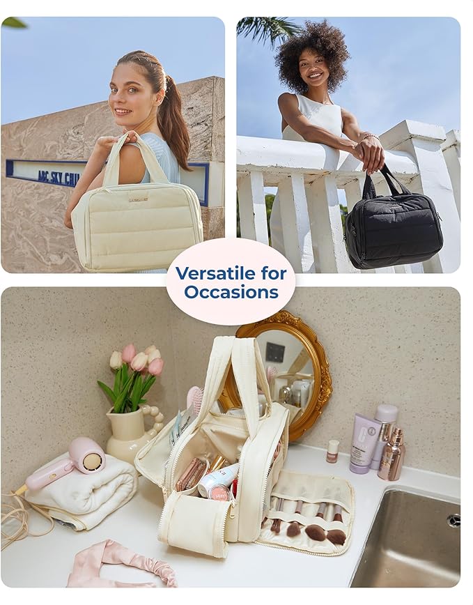 - Ultra Light and Soft Materials: Made of soft and luxurious Taslan fabric. This puffer toiletry bag feels like cotton candy, giving people a relaxed and comfortable atmosphere. Also a reliable, functional, and fashionable makeup bag. Efinitely an ideal Christmas gift for yourself, your family, and your friend
