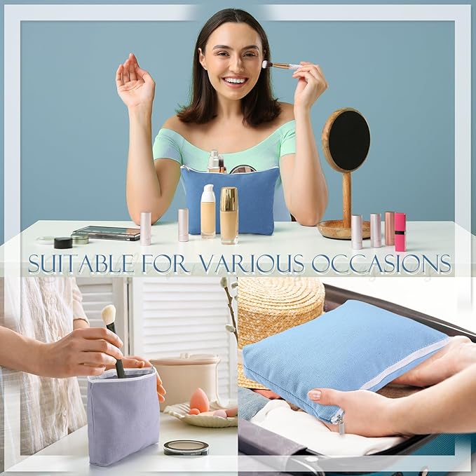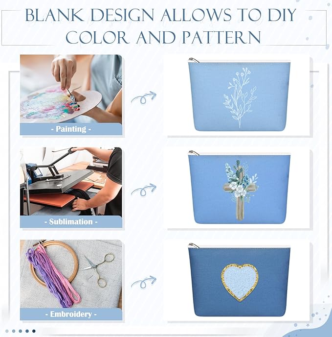 Reginary 10 Pcs Canvas Makeup Bags Bulk for Women Blank DIY Pencil Pouch Travel Toiletry Cosmetics Bags Gift for Christmas Breast Cancer Awareness Thanksgiving Wedding Nurses Teacher(Blue)