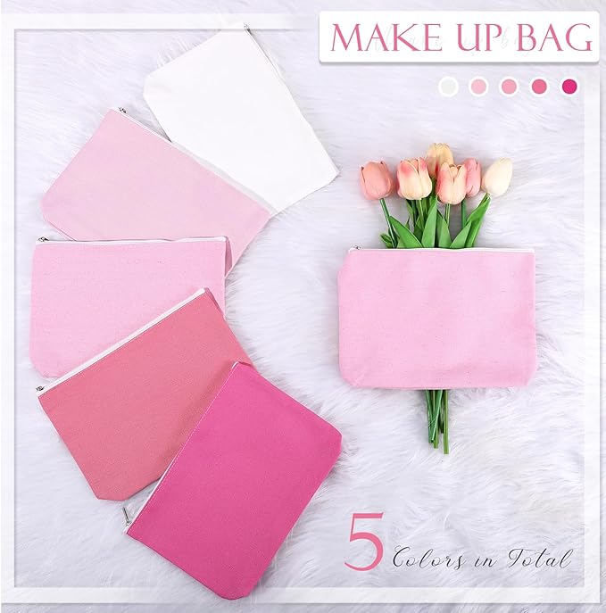 Reginary 10 Pcs Canvas Makeup Bags Bulk for Women Blank DIY Pencil Pouch Travel Toiletry Cosmetics Bags Gift for Christmas Breast Cancer Awareness Thanksgiving Wedding Nurses Teacher(Pink)