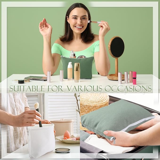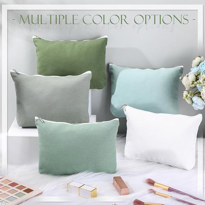 Reginary 10 Pcs Canvas Makeup Bags Bulk for Women Blank DIY Pencil Pouch Travel Toiletry Cosmetics Bags Gift for Christmas Breast Cancer Awareness Thanksgiving Wedding Nurses Teacher(Green)