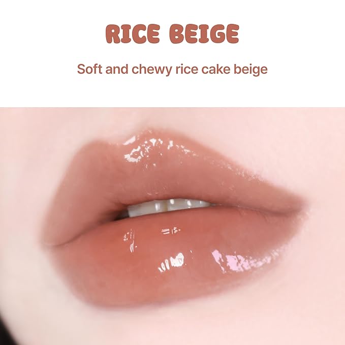 BLACK ROUGE Glow Bokki Tint, GB09 Rice Beige – Korean Lip Tint Inspired by Tteokbokki, Non-Sticky Long-Lasting Lip Stain with Glossy Finish, Cute Stickers – Original Red, Rose, Soy