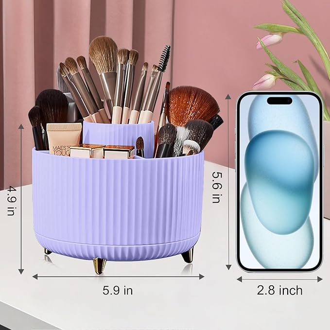 Diesisa Makeup Brush Holder Organizer,360° Rotating Makeup Brush Organizer,5 Slot Make up Brushes Cup for Cosmetics, Nail Polish, Art Supply, Bathroom Vanity Desktop Organizer - Purple