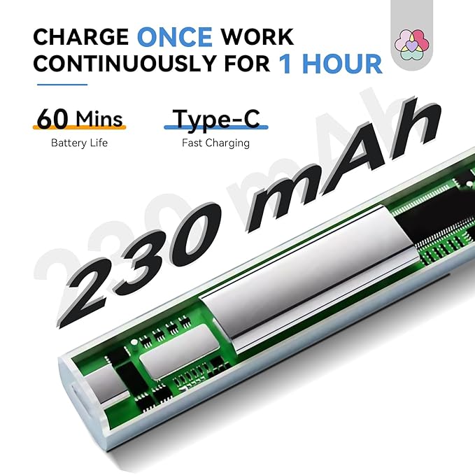 - Strong Rechargable Battery for 1h Continuous Use: Features a 230 mAh battery, providing up to 1 hour of cordless use. Perfect for detailed nail art, it eliminates the need for frequent recharges