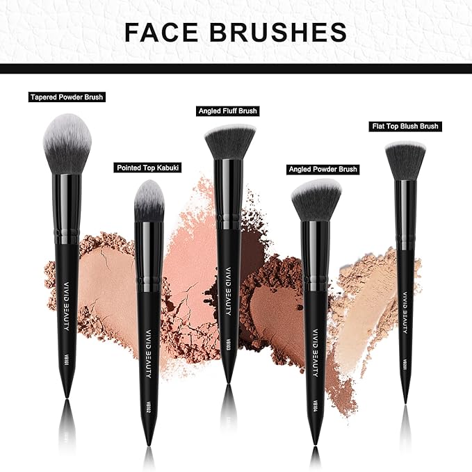 - All-in-One Face Makeup Brush Set: Get everything you need for flawless face makeup with this 5-piece set! Includes a powder brush, kabuki brush, angled brush, blush brush, and contour brush, perfect for applying foundation, bronzer, setting powder, blush, and highlighter. Designed to bring your makeup A-game to every look!