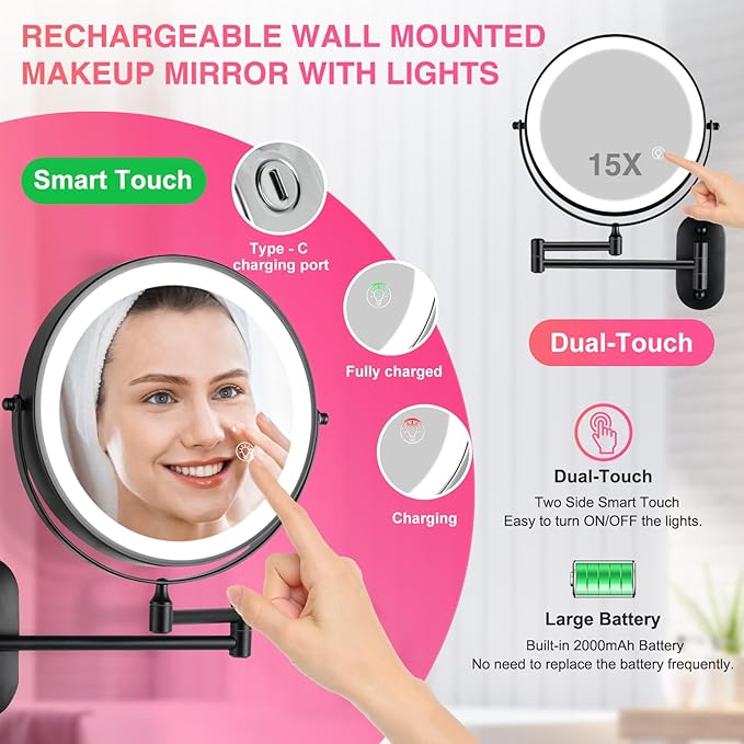- High-Definition Magnification: It has two magnification levels, 1x and 15x, to meet the diverse needs from daily makeup to detailed grooming.
