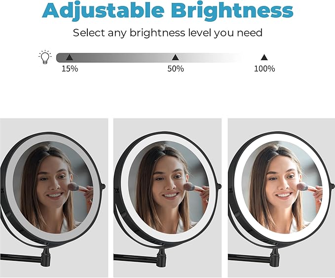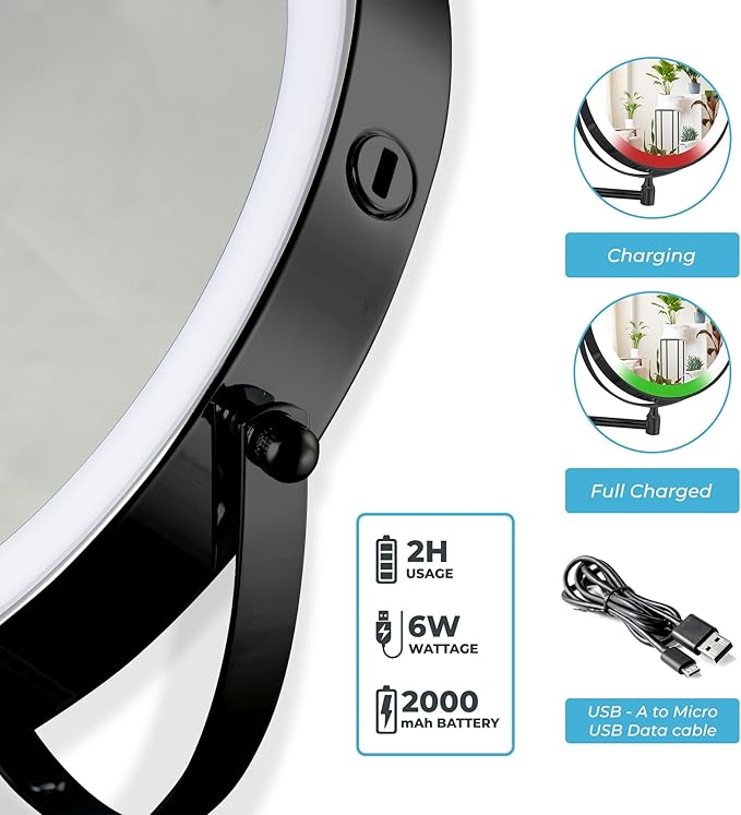 - Rechargeable Convenience: This wall mounted makeup mirror is rechargeable, offering you the flexibility of cordless use. This lighted bathroom mirrors is wall mounted and ensures your makeup routine is never interrupted by power issues.