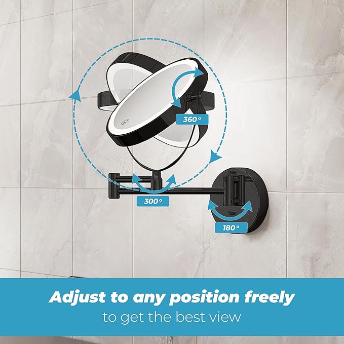 - 360° Rotation for Versatility: Experience the ease of 360° rotation with this makeup mirror. The bathroom magnifying mirror wall mount design allows for flexible positioning, making it an essential bathroom makeup mirror for detailed grooming tasks.