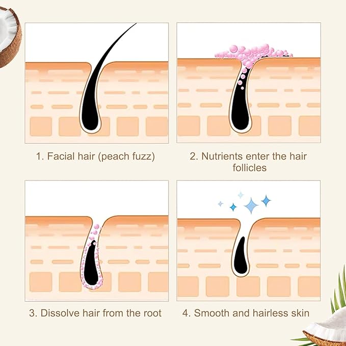 Facial Depilatory Cream, Coconut Hair Remover for Upper Lip and Chin for Face Hair Remover for Body Sensitive Skin Gentle and Non-Irritating,Body Hair Removal Cream for Women(2PCS)