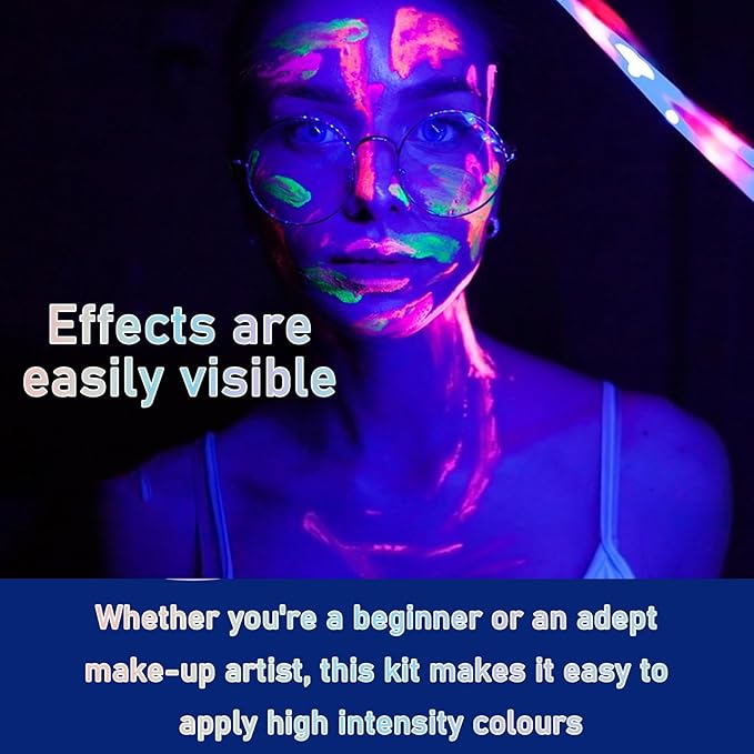 - Easy to Clean: Glow in the dark face paint can be instantly colored after application, easy to clean, you just need to rinse or wipe clean with water or normal makeup remover